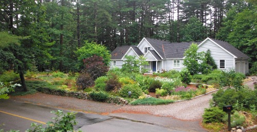 Six years ago, we built our 'dream retirement house' here in Medfield. One of our principal requirements was for a low-maintenance lawn and garden. What we have are 10 'anchor' trees; each a native specimen and all but one that blooms. We added dozens of native shrubs and hundreds of native perennials and ground covers. There is not a blade of grass on our 1.5 acre property. We are in our seventies, but do all of our own maintenance - far less time annually than if we had a traditional lawn and foundation plantings. You can see our garden at 26 Pine Street.